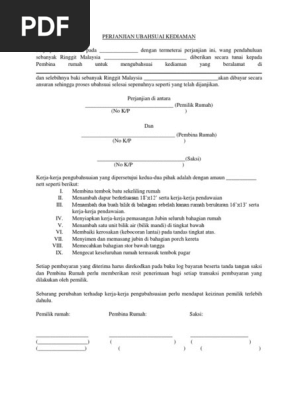 Contoh Surat Perjanjian Ubahsuai Rumah By Tif_391Jaylon 03 Jul, 2022 Post a Comment Surat Perjanjian Ubahsuai Rumah Pdf Surat Perjanjian Ubahsuai Rumah Pdf Surat Perjanjian Kontraktor Vs Pemilik Bina Sendiri Rumah Anda Surat Perjanjian Membina Rumah Pdf 36758716 Surat Persetujuan Pengubahsuaian Rumah Share No comments for "Contoh Surat Perjanjian Ubahsuai Rumah"